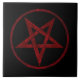 Rot, invertiert, strukturiert Pentagramm im Kreis, auf schwarzem Hintergrund. Okkultistisches Symbol. 666