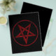 Rot, invertiert, strukturiert Pentagramm im Kreis, auf schwarzem Hintergrund. Okkultistisches Symbol. 666