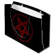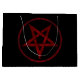 Rot, invertiert, strukturiert Pentagramm im Kreis, auf schwarzem Hintergrund. Okkultistisches Symbol. 666