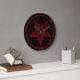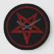Rot, invertiert, strukturiert Pentagramm im Kreis, auf schwarzem Hintergrund. Okkultistisches Symbol. 666