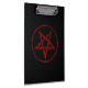 Rot, invertiert, strukturiert Pentagramm im Kreis, auf schwarzem Hintergrund. Okkultistisches Symbol. 666