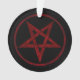 Rot, invertiert, strukturiert Pentagramm im Kreis, auf schwarzem Hintergrund. Okkultistisches Symbol. 666