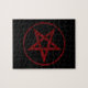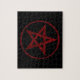Rot, invertiert, strukturiert Pentagramm im Kreis, auf schwarzem Hintergrund. Okkultistisches Symbol. 666