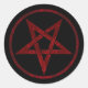 Rot, invertiert, strukturiert Pentagramm im Kreis, auf schwarzem Hintergrund. Okkultistisches Symbol. 666