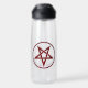 Rot, invertiert, strukturiert Pentagramm im Kreis, auf schwarzem Hintergrund. Okkultistisches Symbol. 666