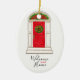 Dieses personalisierte Ornament besticht durch eine rote Türe im Kolonialstil mit Ananasswag und Obstkranz vorne und all Ihren Details auf der Rückseite. Der gesamte Text ist anpassbar, um genau zu sagen, was Sie gewollt haben. Ideal für Hauswärme und Weihnachten.