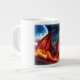 Red Dragon Full Moon Coffee Tasse. Detaillierte Illustration eines majestätischen Drachen, einer lebhaften und feurigen Farbpalette, aufwändige Skalen mit glitzernden Reflexionen, ausgestreckten starken Flügeln, scharfen und heftigen Augen, epischen Fantasieszene, episches, mythisches Wesen, hochauflösendes, ultra-detailliertes, fantasievolles, lebhaftes Licht, Detailskalen, intensiven Blick, berufliche, dramatische Beleuchtung.