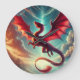 Der rötliche Drache stürzt durch einen dramatischen Himmel, gerahmt von blühenden Wolken und einem weit entfernten Sonnenuntergang. Ideal für diejenigen, die mutige, mythische Entwürfe Liebe haben.