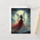 Red Dress Faion on a Swing Full Moon Night Postkarte