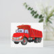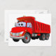 Ein skurriler, roter Müllwagen-Cartoon, der bereit ist, die Baustellen zu treffen und die schweren Lasten zu transportieren.
