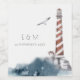 RED DUSKY BLUE LIGHTHOUSE SEA MONOGRAM WEDFA WEINETIKETT