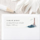 RED DUSKY BLUE LIGHTHOUSE SEA WAVES ADDRESS ETIKET