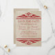 Stilvoll und elegant Eleganter Deko Ankündigung Datum freihalten mit einem Kunstspiel Deko wirl blühend Rahmen in dunklem Rot und einem Vintag strukturierten Hintergrund in weichem Beige. Diese Save the Date einladende Einladung hat einen rustikalen Charme und bewahrt gleichzeitig einen schönen, raffinierten Flair. Absolut perfekt für einen Vintagen Deko der 20er Jahre. Einfach zu anpassen, fügen Sie einfach Ihre Hochzeitsdetails in den Textfeldern zur Verfügung gestellt. Klicken Sie auf "Anpassen", um weitere Personalisierungsoptionen wie das Ändern von Schriftart oder Textfarben zu finden.