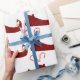Ein rotes Elf-Slipper-Muster mit rot-weiß gestreiften, kantigen Kanälen auf weißem Hintergrund.