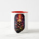 Eine Tasse mit einem Ausdruck eines Pilzschädels direkt aus dem roten Ether