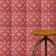 Lebhaftes Keramik-Fliesen-Design mit einem nahtlosen Muster aus geometrischen Formen in Rottönen.