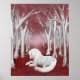 Red and white fantasy land with a white unicorn among red and white trees