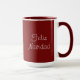 Wünschen Sie Ihren Freunden frohe Weihnachten auf Spanisch mit dieser Feliz Navidad Tasse. Set auf einem roten Hintergrund, gibt es ein grünes Saguaro Kaktus-Design. Festliche weiße Schrift, kann mit Ihrer eigenen Nachricht angepasst werden, wenn Sie möchten. Gut als Geschenk oder für Ihren Feiertag. Viel Spaß!
