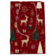 Red Festive Christmas Whimsical Pattern Gift Bag Mittlere Geschenktüte