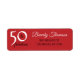 50 und das fabelhafte 50. Geburtstagsadressen-Label. Der Hintergrund ist rot mit weißem und schwarzem Text in einer modernen Typografie. . Sie können den Namen und die Adresse leicht ändern.