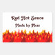 Ein individuelles Konservenetikett für heiße Saucen, Relais, Salsa oder andere flammende Kochrezepte mit roter und orangefarbener Flamme am unteren Ende des Designs.