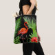 Red Flamingo, Hibiskus & Palm Blätter auf Black
