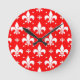 Red Fleur-de-lis-Muster Runde Wanduhr