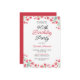 Ein lebendiges Blumendesign mit roten Aquarellblüten an den Ecken, gepaart mit elegantem Drehbuch und Serifentext - eine schöne Art, einen Meilenstein des 90. Geburtstages zu ehren.