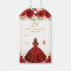Dieses elegante und glamouröse Geburtstagsgeschenk-Tag kann mit einem Namen personalisiert werden. Das Design besticht durch eine schöne Prinzessin mit braunem, rotem Haar und feiner Haut in einem roten Ball. Der Text kombiniert handgeschriebene Skripte mit modernen serifenlosen Schriftart für ein elegantes und raffiniertes Aussehen. Die Blumenarrangements, Schmetterlinge und Goldkonfetti bilden die perfekte Mischung aus rustikal und schick. Das ist ideal für Geschenke und Gastgeschenke. Grafiken von www.etsy.com/uk/shop/SunflowerDayLove