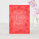 Grußkarte mit einem Zitat von William Shakespeares A Midsommer Night’s Dream "Obwohl sie nur wenig ist, ist sie heftig" umgeben von Blume und Blätter mit rotem Gradientenhintergrund. *Bitte beachten Sie, dass das Zazzle-Wasserzeichen, das in der Zoomvorschau angezeigt wird, NICHT auf dem gedruckten Endprodukt erscheint. © Bookish and Wonderful