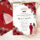 Red Floral Rose Gold Twins Boy Girl Quinceañera Einladung