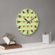 Red Floral Vine Pattern on Light Green Große Wanduhr