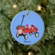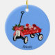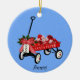 Roter Flyer Wagon Keramik Weihnachtsschmuck. Personalisieren Sie dies für Ihre Familie und Freunde. Design und einige Grafiken von Claudine Boerner mit einigen Grafiken, die unter CC0 Lizenz veröffentlicht wurden.