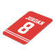 Red Football Jersey mit Zahlengeschenk. Perfektes Geschenk für Fußball, Fußball, Basketball, Hockey und viele Sportler. Klicken Sie auf die Schaltfläche Anpassen, um das Design durch Auswahl der gewünschten Hintergrundfarbe zu personalisieren und sogar Ihren eigenen Text hinzuzufügen.