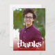 Vergewissern Sie sich, dass Ihr Lieblingsgrad allen, die ihren Meilenstein-Event unterstützt haben, eine Wertschätzung entgegenbringt! Versenden Sie dieses atemberaubende, einfache, moderne, personalisierte Foto danke Postcard. Fett, grafisch, weiß und eine rote Ziegelgradation überlagern ein Foto Ihrer Wahl. Auf der Vorderseite personalisieren Sie den benutzerdefinierten Text mit dem Namen Ihres Abschlusses und dem Jahr der Klasse. Fügen Sie eine personalisierte Note auf der Rückseite in weich graue Typografie, unter dem Ziegelrot-Kappe-Symbol. Garantiert eine stilvolle Touch zu ihrer Korrespondenz hinzufügen! In dieser trendigen und eleganten Kollektion finden Sie auch passende Ankündigungen, Adressetiketten, Schilder, Banner, Oberkappen, Servietten, Teller und andere Abschluss-Goodies. Garantiert, um ihren besonderen Anlässen stilvollen Spaß zu bieten! Ersetzen Sie einfach das Foto durch eines Ihrer eigenen und geben Sie den Namen und das Jahr Ihres Abschlusses ein, und Sie können diesen Abschluss einfach personalisieren dank Ihrer Postkarte. Fügen Sie eine personalisierte Note und Rücksendeadresse auf der Rückseite hinzu. Bitte schicken Sie mir eine Nachricht mit Fragen oder Wünschen.
