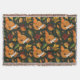 Ein roter Fuchs mit Kürbis, Eicheln und Herbstblättern in dunkelgrüner Umgebung