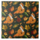 Ein roter Fuchs mit Kürbis, Eicheln und Herbstblättern in dunkelgrüner Umgebung