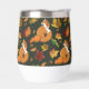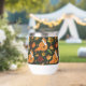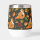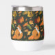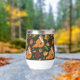 Ein roter Fuchs mit Kürbis, Eicheln und Herbstblättern in dunkelgrüner Umgebung
