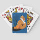 Ein roter Fuchs sitzt neben Kürbissen und Herbstblättern. Einige Herbstblätter fliegen in Richtung Wald hinter dem Fuchs.