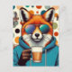 Red Fox in Sonnenbrille mit einem Kaffee Postkarte