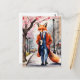 Red Fox Morning Coffee Walk in der Frühlingsstadt Postkarte