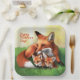 Red Fox Mutter und Kits im Gras Pappteller