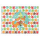 Red Fox Winter Holiday Tischdecken, niedlich, bunt und so viel Spaß für die Feriensaison! Zwei rote Füchse tragen Winterhut, Schals und Ohrmuffe, ein geschmückter, schneebedeckter Weihnachtsbaum, weiße Schneeflocken auf einem blauen Kreis und viele hübsche Blume Schneeflocken aus Braun, Rot, Aqua Blau, Grün und Gold auf weißem Hintergrund.