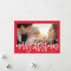 Frohe Weihnachten Weihnachten Weiße Schrift, wünschen Ihren Lieben im Stil. Ihr Foto auf der Rückseite oder das aktuelle Sicherungsmuster. Funky Calligraphy script style. Schreibstil. Großes Foto. Glückliches, festliches Design.