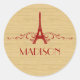 Elegante und schicke französische Blüh-Stickers mit einem Imitat Holzkornhintergrund und einem Eiffelturm-Design in dunkelrot mit Kaskaden von stilvollen Wirbel. Dieses mädchenhafte und trendige Design lässt sich leicht mit dem personalisierten Text Ihrer Wahl anpassen. Klicken Sie auf "Anpassen", um weitere Personalisierungsoptionen zu erhalten.