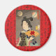 Magnet mit Geisha auf asiatischem Schreiben mit rotem Hintergrund.