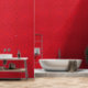 Diese Diamanttapete weist ein rotes geometrisches Muster auf. Eine großartige Möglichkeit, das Schlafzimmer, Bad, Duschbad, Wohnzimmer, Flur oder Büro aufzurichten. Die passende Einrichtung.