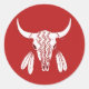 Rote Ghost Dance Buffalo Aufkleber sind für Aufkleber Sammler, Indianer, Westler, Western-Fans, Old West History Stärker, diejenigen, die an schamanischen Ritualen und Zeremonien interessiert sind, Schädel Sammler, und diejenigen, die das noble amerikanische Büffel bewundern. Red Ghost Dance Buffalo ist Steamy Raimon Original-Kunst.