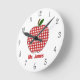 Red Gingham Apple Teacher Clock Runde Wanduhr