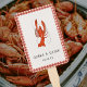 Behalt diesen Sommer mit diesem Handfan mit einer spielerisch handgezeichnet Crawfish-Illustration, gepaart mit klassischem Rot-Gingham-Set, auf eleganter personalisierter Typografie. Sei es eine Verlobungsfeier, Geburtstagsfeier, eine jährliche Familienfeier, ein Crawfish Boil ist immer eine gute Idee, oder?